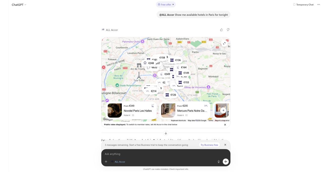 Real test result: ALL Accor — “Show me available hotels in Paris for tonight”